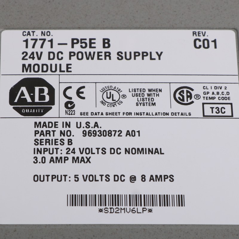 The 1771-P5E Power Supply Module is an essential component in the 1771 I/O system, providing reliable and stable power for the I/O modules in the system.