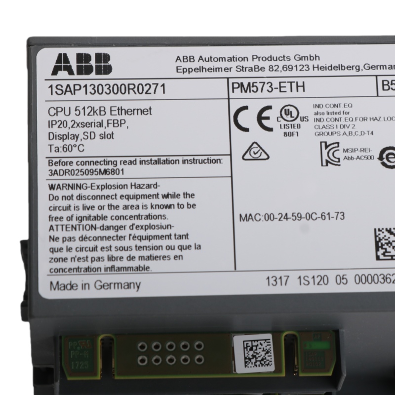The PM573-ETH 1SAP130300R0271 AC500 Processor module is brand new and original.