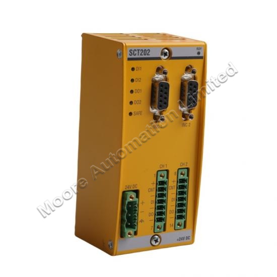 The SCT202 is a safety module designed for measuring safety-related rotations, supporting safety applications up to SIL2 and PLd. It offers the following I/O capabilities: