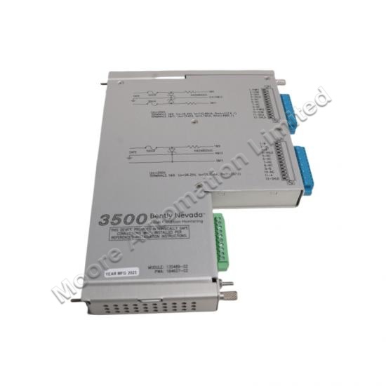 The Bently Nevada 135489-02 I/O Module with Internal Barriers is a high-performance input/output module designed for use with the Bently Nevada 3500 Series Machinery Protection and Monitoring System. This module is specifically engineered to handle up to 2 proximity/acceleration channels and 2 Velomitor channels, providing a robust solution for vibration and condition monitoring in industrial machinery.