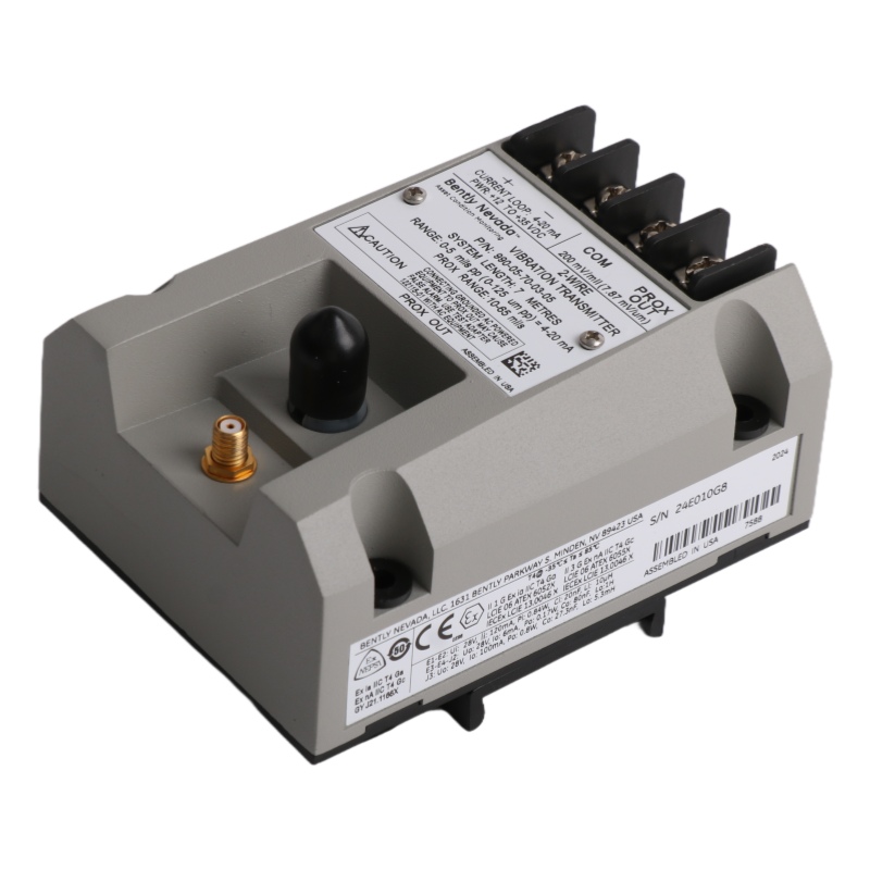 The Bently Nevada 990-05-70-03-00 Vibration Transmitter is a high-performance vibration monitoring device designed to measure and transmit vibration data in industrial environments. Built with a rugged AISI 304 stainless steel probe case, this transmitter ensures durability and reliability even in harsh conditions.