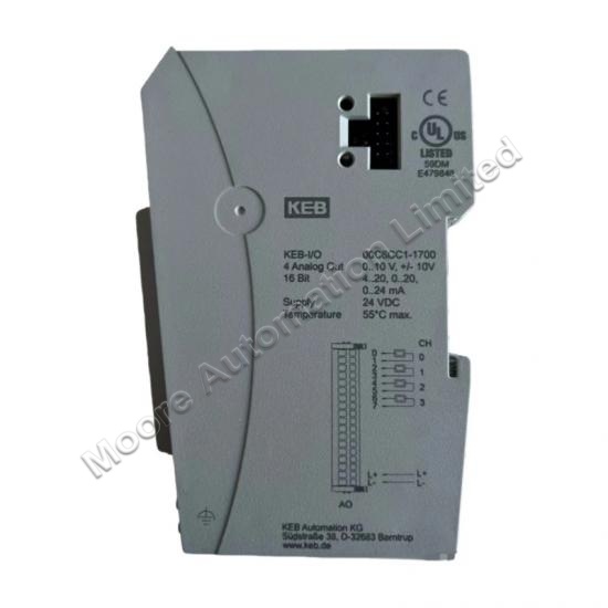 The KEB 00C6CC1-1700 Module is an advanced control module designed for precise control and monitoring in industrial environments.t is capable of withstanding a short-circuit current of up to 30mA and features a minimum load resistance of 1kΩ.