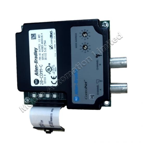 The 20-C0MM-C ControlNet Adapter is a reliable communication module designed for seamless integration into industrial networks. It allows devices to communicate efficiently over the ControlNet protocol, providing fast and reliable data exchange between field devices and control systems. The adapter is built for use in demanding industrial environments, supporting robust communication even in challenging conditions.With its compact design and easy integration, the 20-C0MM-C ControlNet Adapter is ideal for applications requiring real-time data transmission, high network reliability, and minimal downtime.