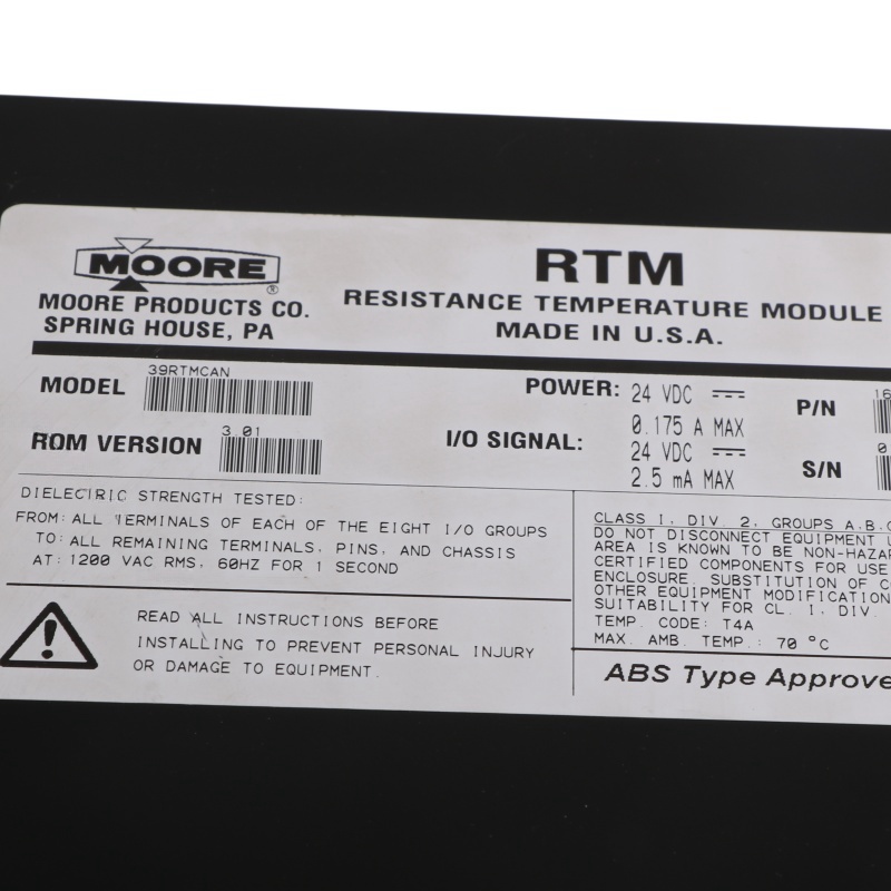 The SIEMENS 39RTMCAN (16207-61/10) is a Resistance Temperature Module (RTM) designed for use in the Moore APACS I/O system. This module is specifically utilized for temperature measurement in various industrial applications. Here are the key features and specifications: