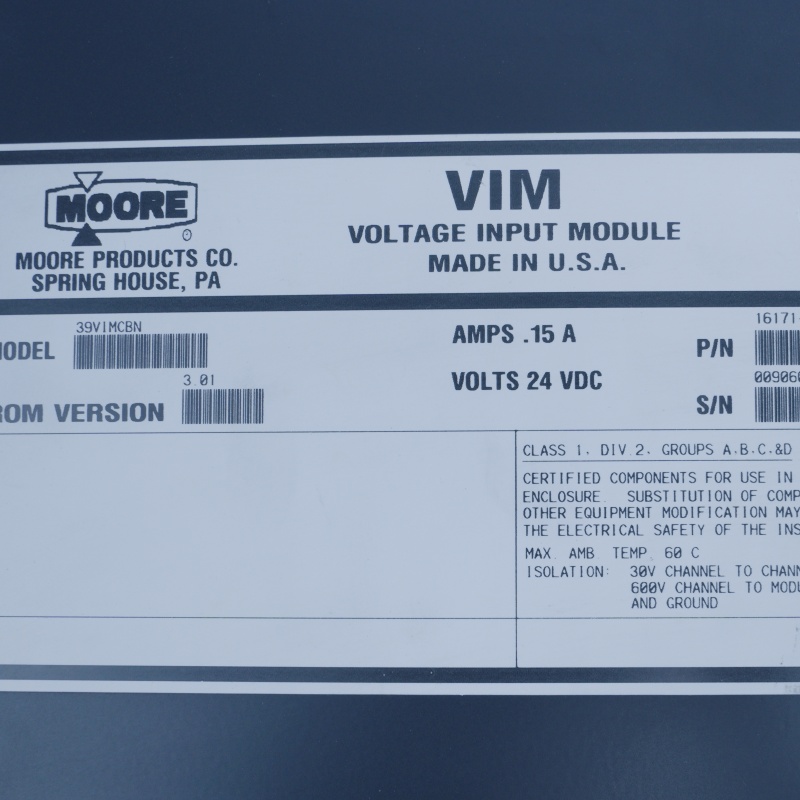 The SIEMENS 39VIMCBN is a Voltage Input Module (VIM) designed for use with the Moore APACS system. |
