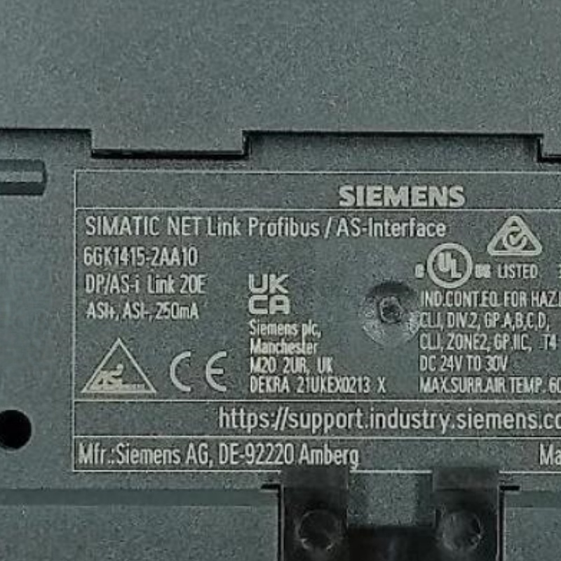 The Siemens 6GK1415-2AA10 is a SIMATIC NET DP/AS-Interface Link 20E gateway for connecting PROFIBUS-DP and AS-Interface (AS-i) bus systems.